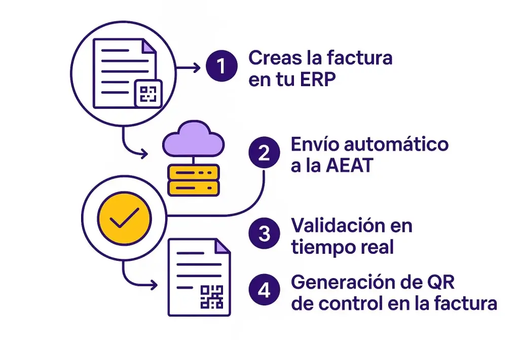 Verifactu (validación en tiempo real): conecta directamente con la AEAT para validar cada factura al momento.